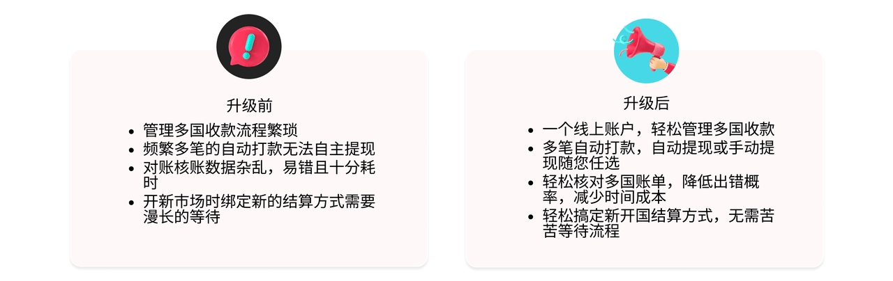 | 产品 | 2024/12/17 | 东南亚跨境所有国家 | 「钱包」功能上线通知 | 为了提升结算流程的便利性和效率,我们在商家中心上线了「钱包」功能。现在,商家可以通过「钱包」轻松管理多国收款,自主选择自动或手动提现方式,并降低对账核账的错误率和时间成本。「钱包」功能支持在商家维度创建资金钱包,管理商家货款、保证金和提现卡等。开通「钱包」后,商家无需绑定多张银行卡,即可完成多国账单结算!![]() 在以下操作手册中,我们将为您详细介绍「钱包」的具体功能和使用方法。操作手册内容包括:如何使用「钱包」账户;资金提现方式;账户信息完善方式等。请提示您的商家,如需使用「钱包」功能,请商家按照步骤完成「钱包」的开通和必要的账户信息完善。这将有助于商家实时查看每日的平台结算资金数据和明细。 | https://seller.tiktokglobalshop.com/university/essay?identity=1&role=1&knowledge_id=249946390021904&from=feature_guide |