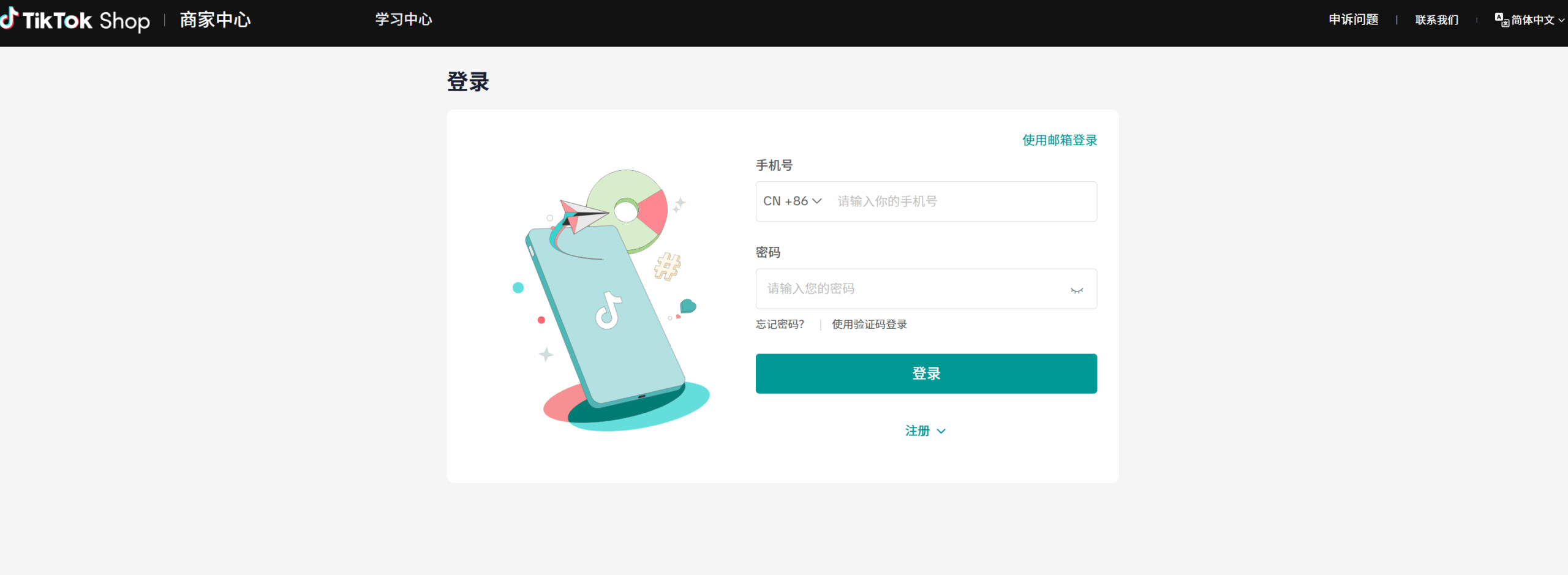 | 登录商家中心 | 点击跳转:商家中心(seller center) | ![]() |