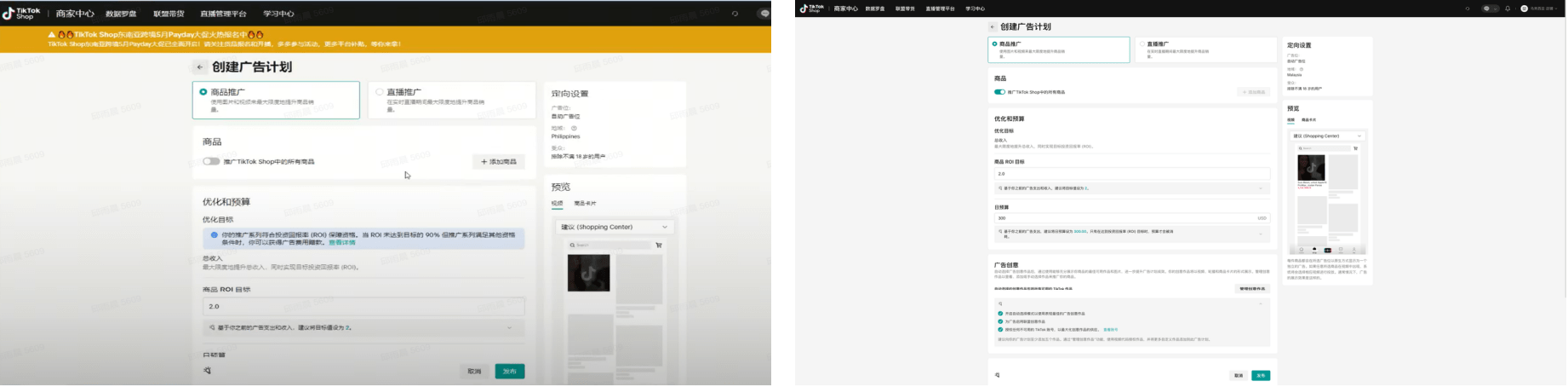- 需要注意的是:如果店铺投放ROI1广告,则一个账户的广告计划上限为50个,因此,一个店铺必须依赖多账户才能实现大量投广;而GMV MAX没有投放数量限制,仅需一个账户即可