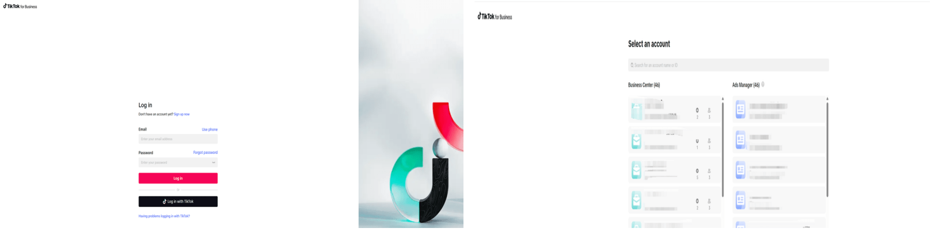 | 登录TikTok商务中心 | 点击跳转登录:商务中心(TikTok for Business)(和商家后台的账号相同)并选择需要退款的广告账户(如果有多个商务中心账号的话) | ![]() |