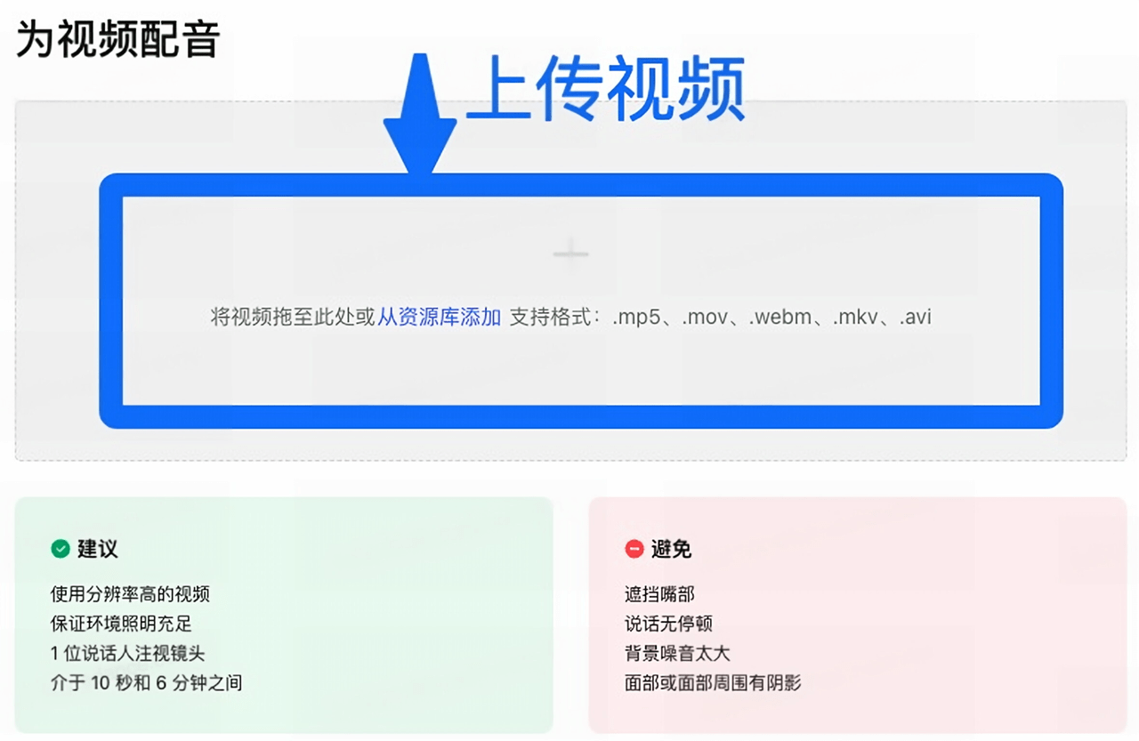 - 按以下要求准备视频素材,可保证生成效果较好: